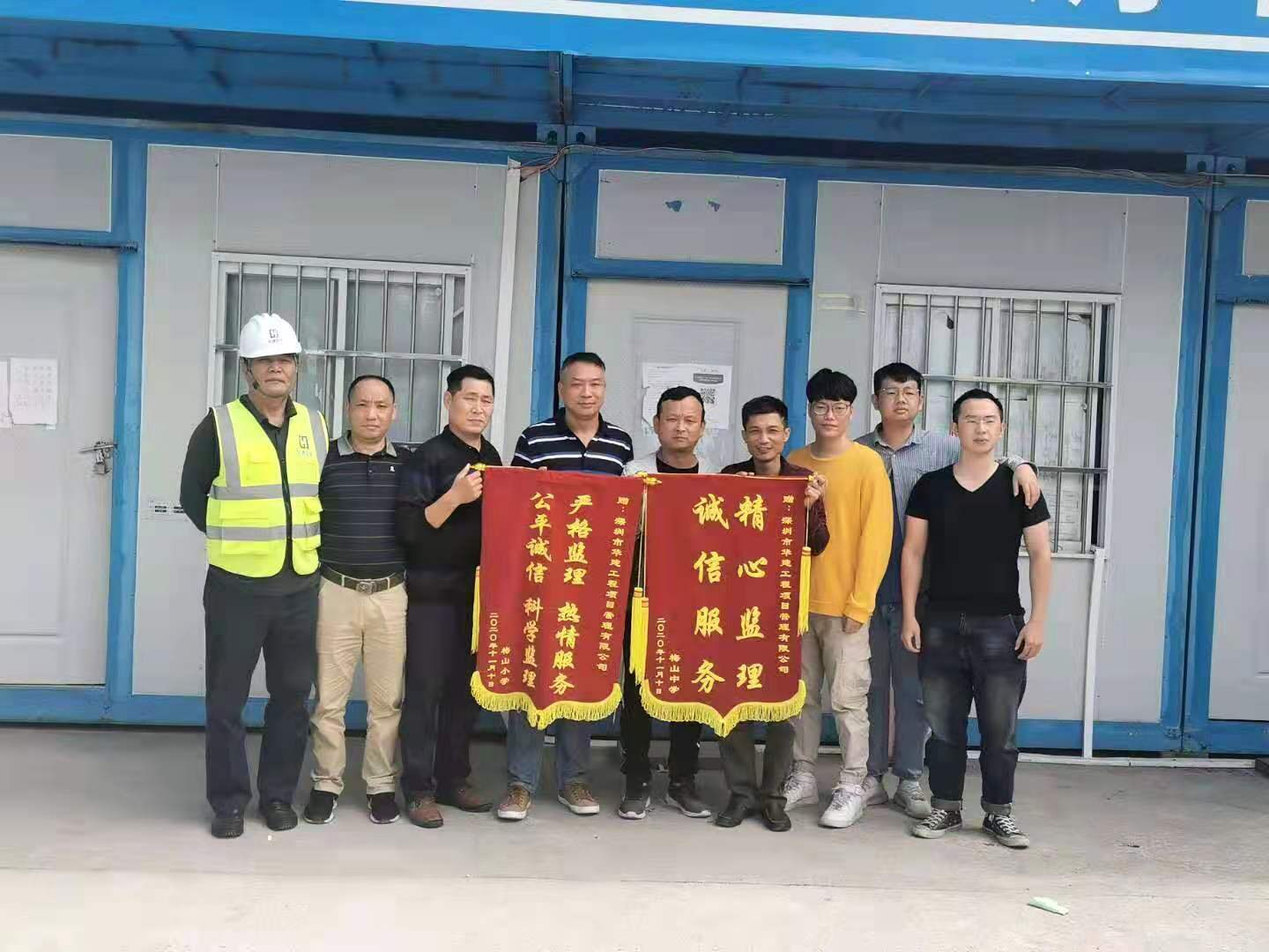 (梅山中學、梅山小學向華建監理致送錦旗)