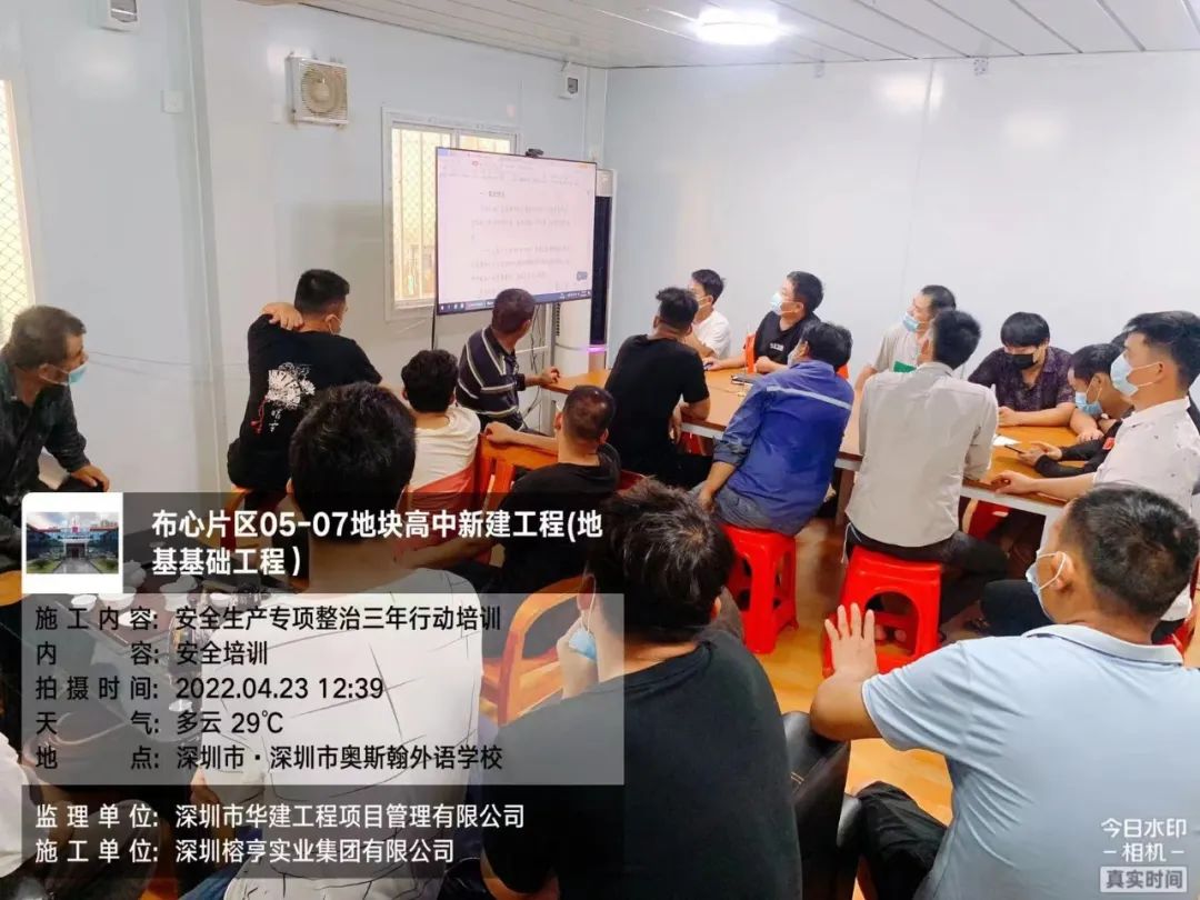此外,華建承監項目布心片區05-07地塊高中新建工程、龍華區居民小區二次供水設施提標改造工程(第二期)在本月開展安全教育專項培訓,進一步壓實安全監管責任,力爭將安全工作做好做細做實,齊心協力筑牢安全防線。