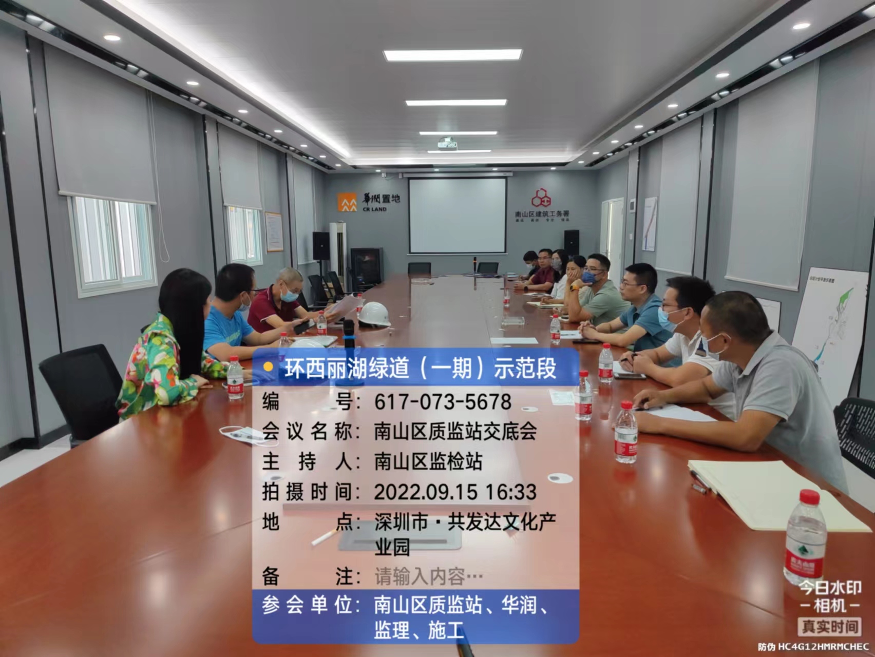 ▲質監站交底會--環西麗湖綠道(一期)示范段