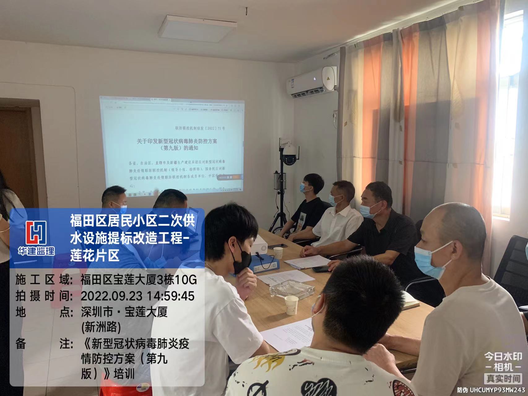 ▲《新型冠狀病毒肺炎疫情防控方案(第九版)》培訓會--福田區居民小區二次供水設施提標改造工程—蓮花片區